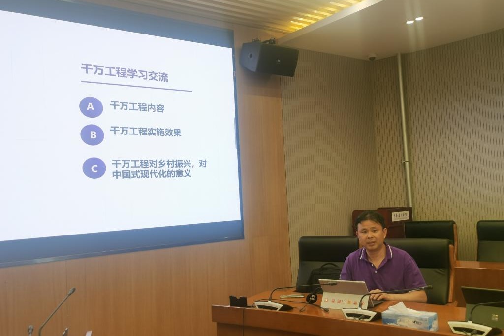 习近平总书记在党的二十大报告中强调:“贯彻新发展理念是新时代我国发展壮大的必由之路”。各党支部分别结合自身实际,开展多种形式学习和实践,引领全体党员贯彻新理念,奋进新征程。数学技术教研组联合党支部书记周建军以浙江龙泉人的亲身感受开展党课,从“什么是千万工程”“千万工程的实施效果”和“千万工程对乡村振兴、对中国式现代化的意义”三个方面与支部老师们进行了学习交流。