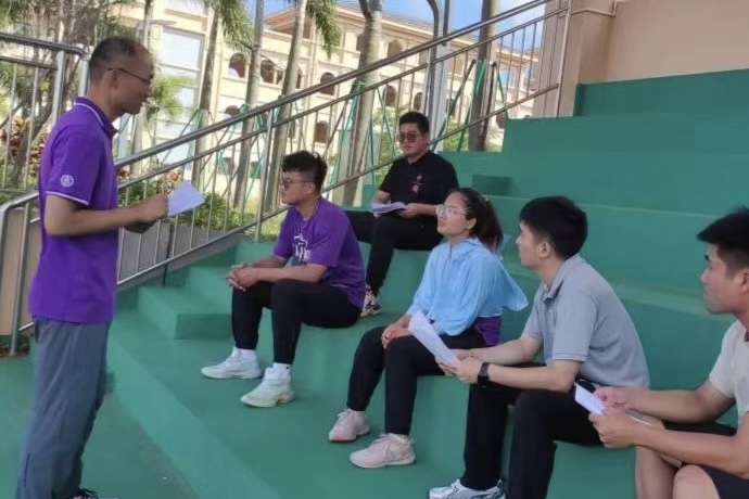 bg真人试玩体育组王鹏老师在听评课之余还参与了文昌学校体育组集体备课,就集体备课的形式和内容提出建议。王鹏老师结合自身教学经验与文昌学校体育教师在中考备考、特长生培养、高中模块化教学和青年教师成长等多方面进行了深入的交流。