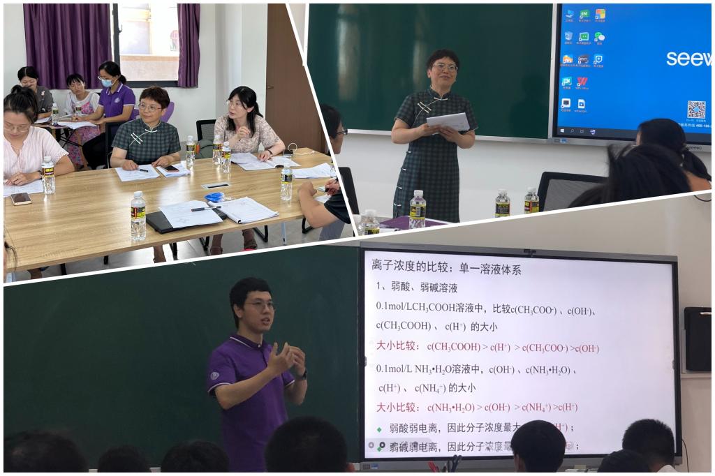 bg真人试玩化学组三位老师与文昌学校高中部的老师进行了集体备课、培优指导、高考试题分析与备考策略等方面的经验交流。白建娥老师对教师基本功大赛的参赛老师进行了专业细致的点评;董多老师精心准备并展示了《水溶液离子浓度比大小》的示范课。