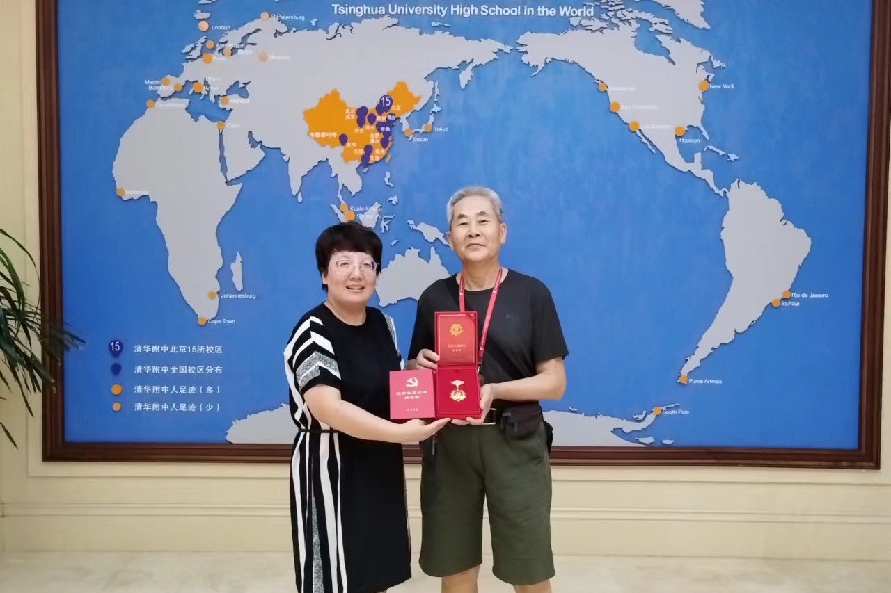 2021年3月,经党中央批准,中央组织部印发了《“光荣在党50年”纪念章颁发管理办法》。光辉的纪念章代表着以习近平同志为核心的党中央的关怀和温暖,映照着老党员为共产主义事业奋斗终生的庄严承诺。截至2023年7月1日,附中五位老党员王秀娟、胡朝慧、王一华、王桂斌、高福同党龄满50周年,附中党员干部亲自为老同志颁发纪念章。