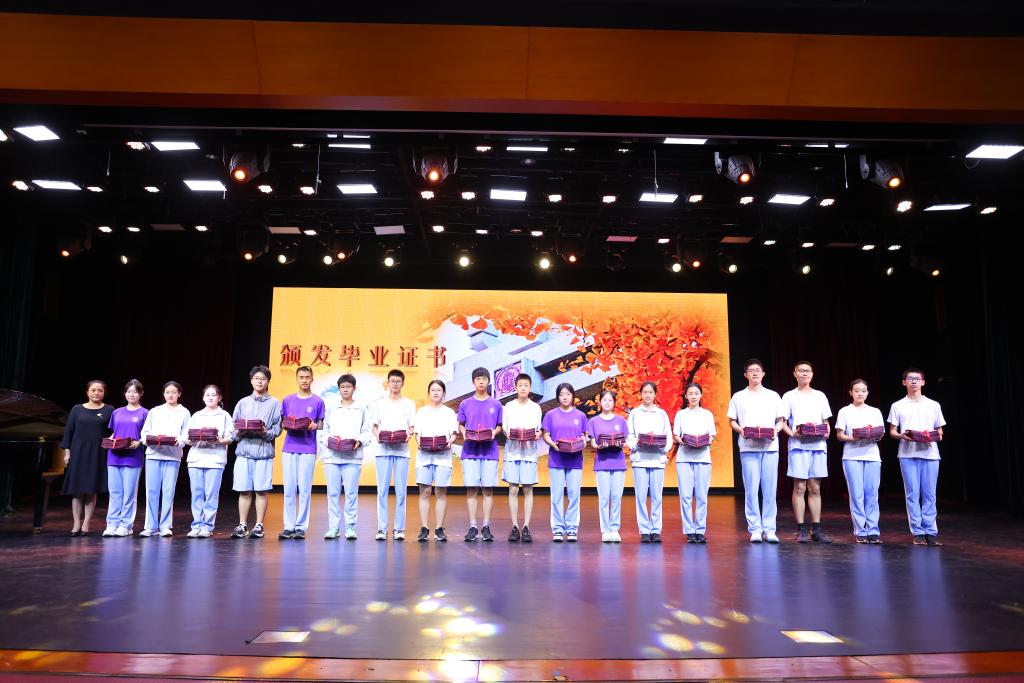 毕业典礼第八项共唱校歌。三年初中时光,难忘西山脚下圆明园旁,白杨丛中一派春光。田径场上龙腾虎跃,教学楼里攻读华章。全体同学跟着熟悉的旋律,共同歌唱校歌,在歌声中怀念初中,感恩母校培养。