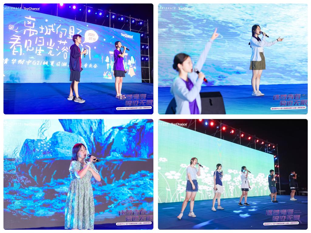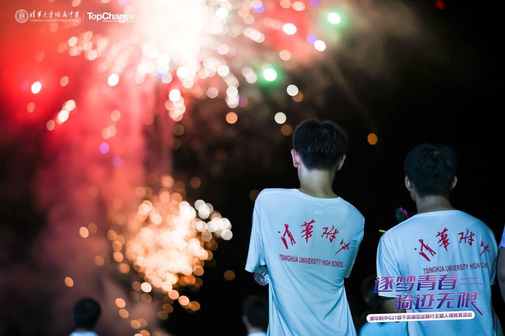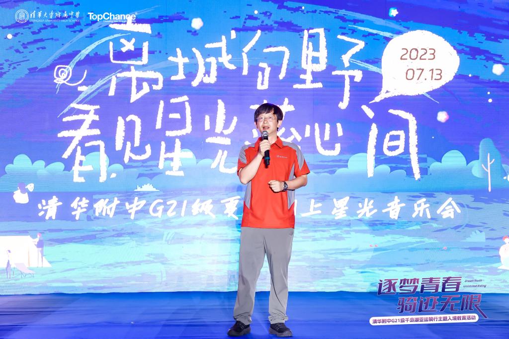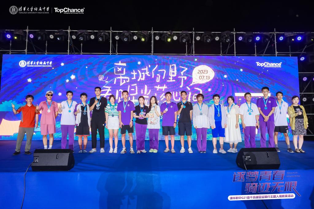 研学的最后一晚,全体师生一起奔赴音乐的盛会——“离城向野,看见星光落心间”。动感的音乐、炫目的灯光,灿烂的烟花在夏日的夜空中绽放,点亮每个人眼中的星光。活动伊始,年级组长李劲松老师肯定了同学们完成四十五公里的勇气和能力,并与唐洁老师一同为各班同学颁发完赛奖牌。接着同学们为全体老师颁发完赛奖牌,每个人都在这场骑行中突破着自我,感受着青春的奇迹。