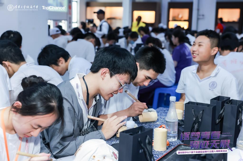 在徽州的第二天,同学们来到了徽字号徽雕博物馆,每位同学都亲手体验了作为徽州三雕之一的竹雕,雕刻的内容为上面有“孝”和“礼”两个字的笔筒。在一刀一刀的雕刻中,同学们学习并且传承着这项非物质文化遗产的技艺,以行动为中华传统文化的传承助力。