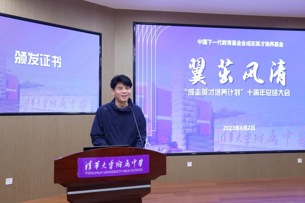 “成志英才培养计划”第五届学员侯鑫垚作为优秀学员代表在大会上发言,他认为项目为他提供了更优质的教育资源,更多元广阔的平台,激励了他们的成长,更促使他们在项目的传承中感受责任的传递。