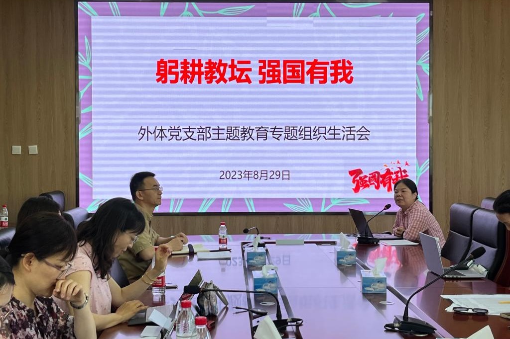 2023年8月29日上午,bg真人试玩外语体育教研组联合党支部在附中成志楼201开展学习贯彻习近平新时代中国特色社会主义思想主题教育,结合《习近平新时代中国特色社会主义思想主题教育专题组织生活会党员“五个一”完成情况和检视问题清单》,做汇报和党性分析。bg真人试玩党委书记曹海翔和支部全体党员参加了本次组织生活。