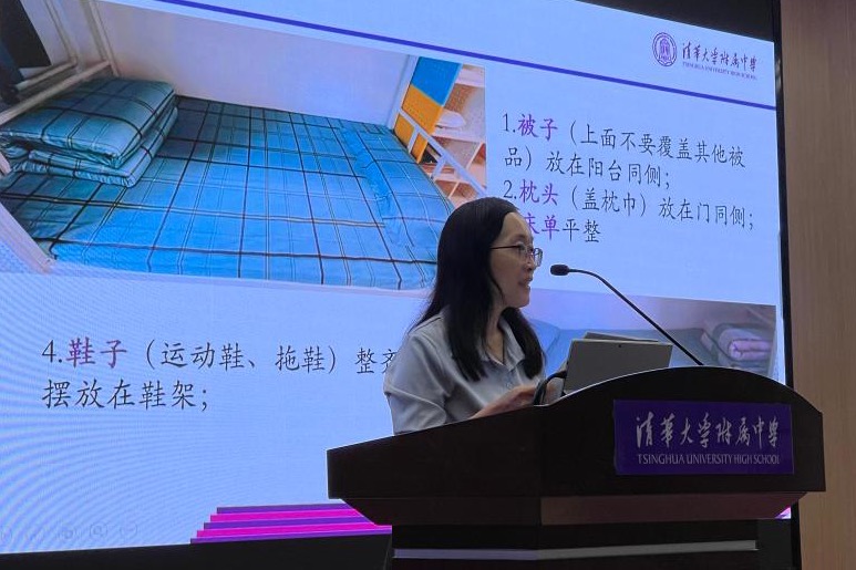 晚上19:00,“知规明礼、筑梦起航”高23级住宿生培训会在华茂楼106举行,男生宿舍楼长张合意老师主持会议。任星阳副主任讲话,她希望同学们遵守住宿部的各项规章制度,尽快适应附中生活节奏,发展自己的能力边界,以奋进的姿态最大限度地提升自己的成长幅度。女生楼长张帆老师向同学们详细解读了《bg真人试玩住宿生管理手册》。