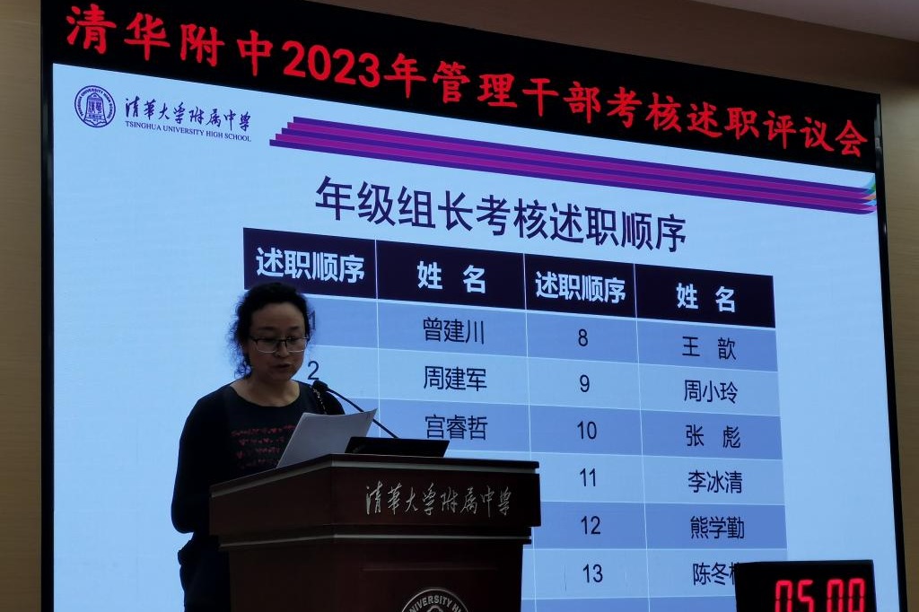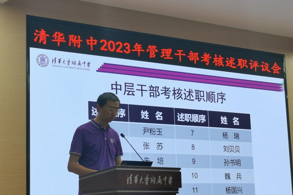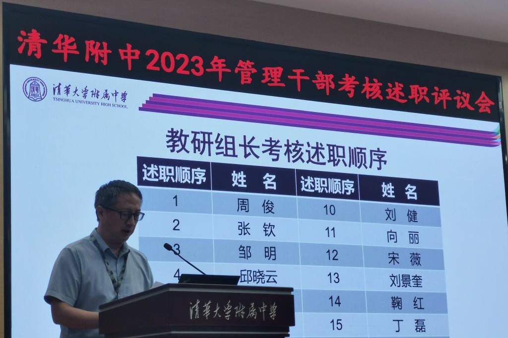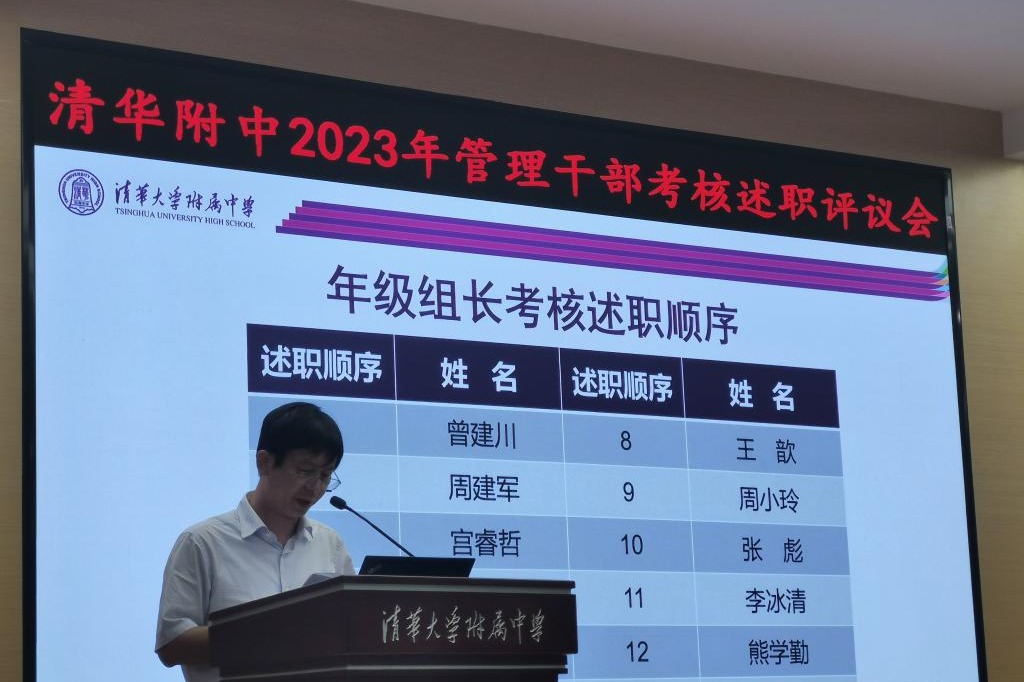 9月5日下午进行管理干部考核述职评议会由学校统一组织,副校长张苏主持。bg真人试玩校长方妍,党委副书记张洁,副校长白雪峰、徐文兵、周建军出席会议。中层干部、教研组长、年级组长汇报了一年以来的主要工作。大会在规范、有序的氛围中圆满结束。