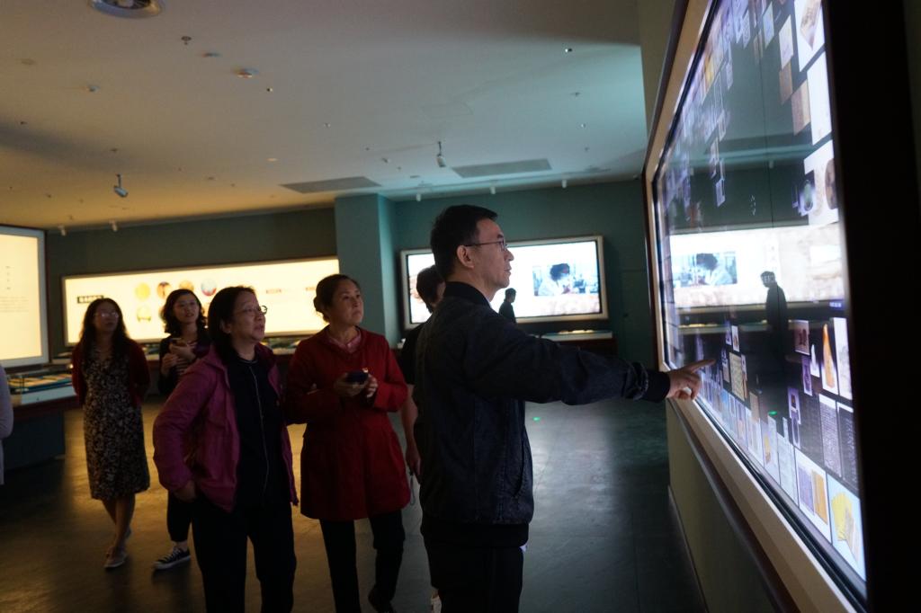 在挑空两层的“国家书房”,3万余册经典展现了厚重的文化底蕴;“真理之光——马克思主义中国化时代化经典版本展”汇集了千余件马克思主义著作经典版本;还有极具时代特色的中小学教材、文学作品、期刊创刊号、音像制品……这些宝贵的典籍版本作为传承中华优秀传统文化的媒介和载体,记录见证了中华文明的生生不息。参观过程中,大家认真聆听,彼此交流分享,在感悟中华文化的源远流长,重温马克思主义中国化的光辉历程中,坚定了文化自信,更加深刻理解了“两个结合”的重大意义。
