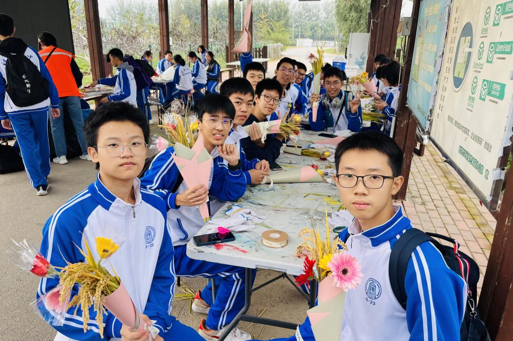 其后,同学们又带着刚刚收获的麦穗,把它们与农场的鲜花一起,组合成别具特色的手捧花束。在手工制作的过程中,也蕴含着同学们的美感和巧思。
