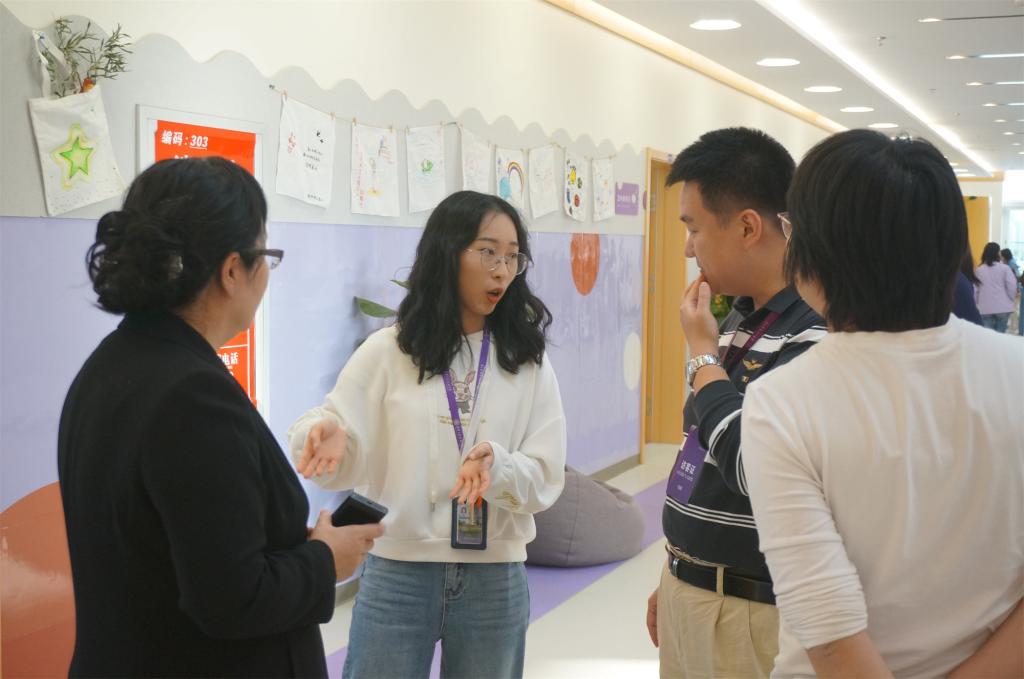 教研环节后,上地学区的各校老师在附中心理办公室团队的带领下,参观了bg真人试玩的心理办公室、个体辅导室和团体活动室等,并进行了专业经验交流。bg真人试玩优美温馨的心理健康教育环境、先进的心理教育理念和丰富的教育实践活动,给老师们留下了深刻的印象。