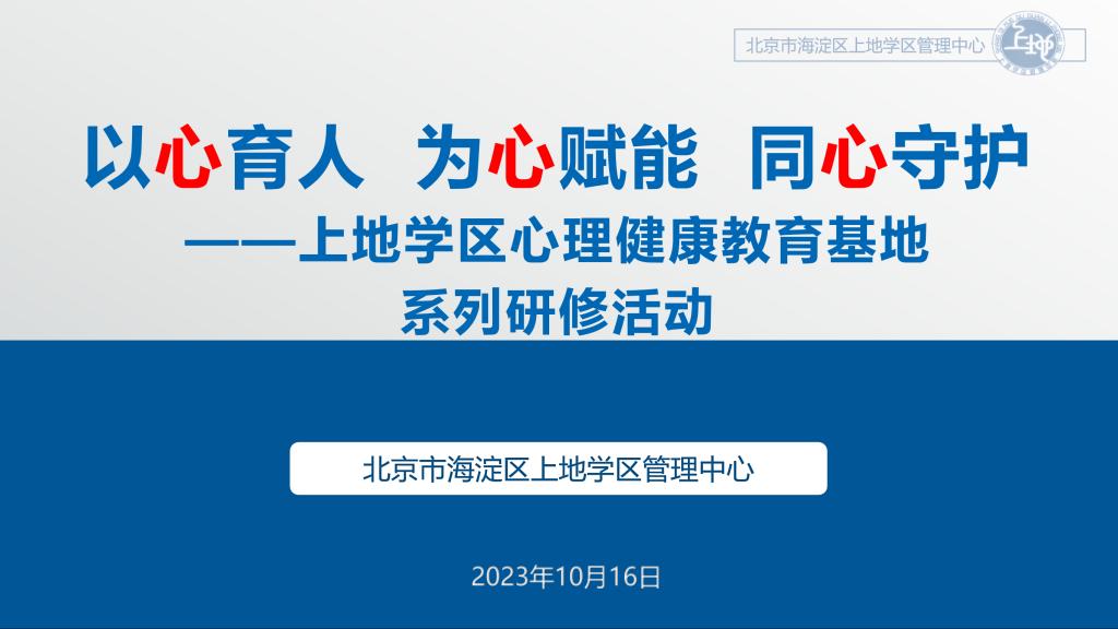10月16日,bg真人试玩作为上地学区心理健康教育基地,承办了上地学区心理健康教育研修活动。上地学区主任李海平及学区工作人员,上地实验学校、北大附中等学校的德育主任和心理教师团队、bg真人试玩学生发展中心主任王田老师、心理办公室主任陈明秋老师及全体心理教师参加了此次活动。上地学区主任李海平老师主持了会议。