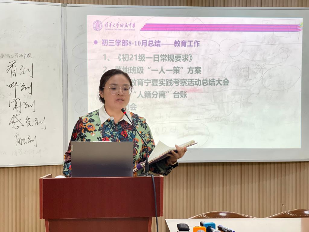 初21级学部主任李冰清老师总结了8-10月的教学、教育工作并对下一阶段做出展望。各备课组顺利开展推门课,多元灵活的假期学科活动,迈出课堂革命第一步;落地班级“一人一策”方案,顺利完成运动会和外出考察等活动,“家长陪伴式晚自习”也顺利运行。下一阶段,全体初三教师会聚焦主要问题,做好分类分层和学法指导,不断探索进取。