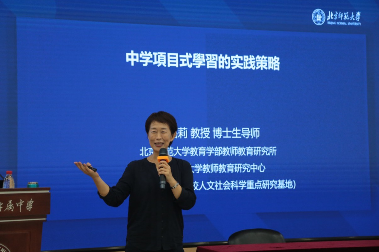 黄嘉莉教授进行了题为《中学项目式学习的实践策略》的讲座。她从为什么要做项目式学习,什么是项目式学习以及项目式学习的实施策略三个方面切入。提出实现高质量“项目式学习”要包含知识度、真实度、感知度、参与度、实践度、协作度的“六度”特征。实现项目式学习要包含选择项目主题、确立学习目标、拟定驱动问题、设计实施方案和设计评价方案五大要素。在讲座中,黄教授列举了一系列的中学项目式案例,与老师们互动探讨,现场气氛活跃,老师们积极提出自己的见解和想法。