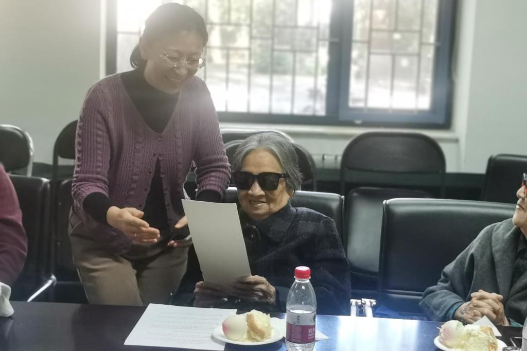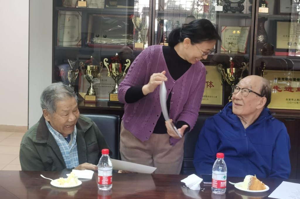 重阳节是中国传统敬老爱老节日,bg真人试玩离退休第二党支部八十岁老人占了百分之七十,在这个特殊的日子里,支部用这种形式与老师们一起欢度自己的节日。支部特意准备了蛋糕向老教师们祝寿。汝涛老师把自己亲手绘制的山水画送给三位年龄最大的老师,以表达对他们的敬意。