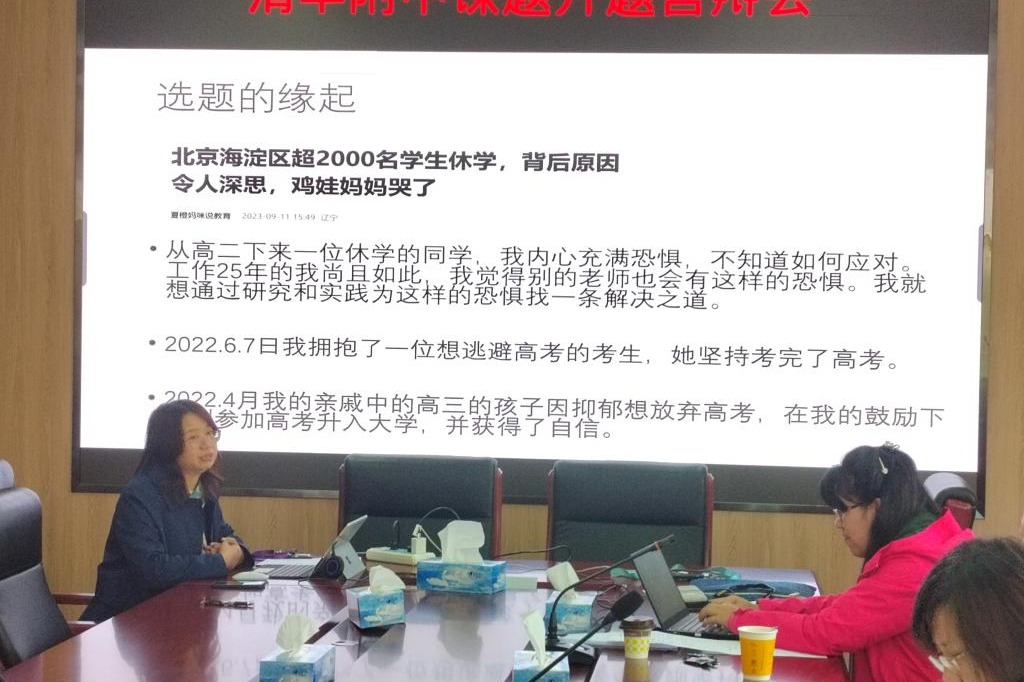10月26日上午,北京市教育科学规划2023年度一般课题开题论证会暨2023-2024学年度校级课题立项评审会在成志楼G201会议室举行。北京市教育科学研究院李群研究员、北京师范大学张华军副教授和海淀区教育科学研究院侯兰主任应邀担任评审专家,教科研室负责人谭晨主持评审会。