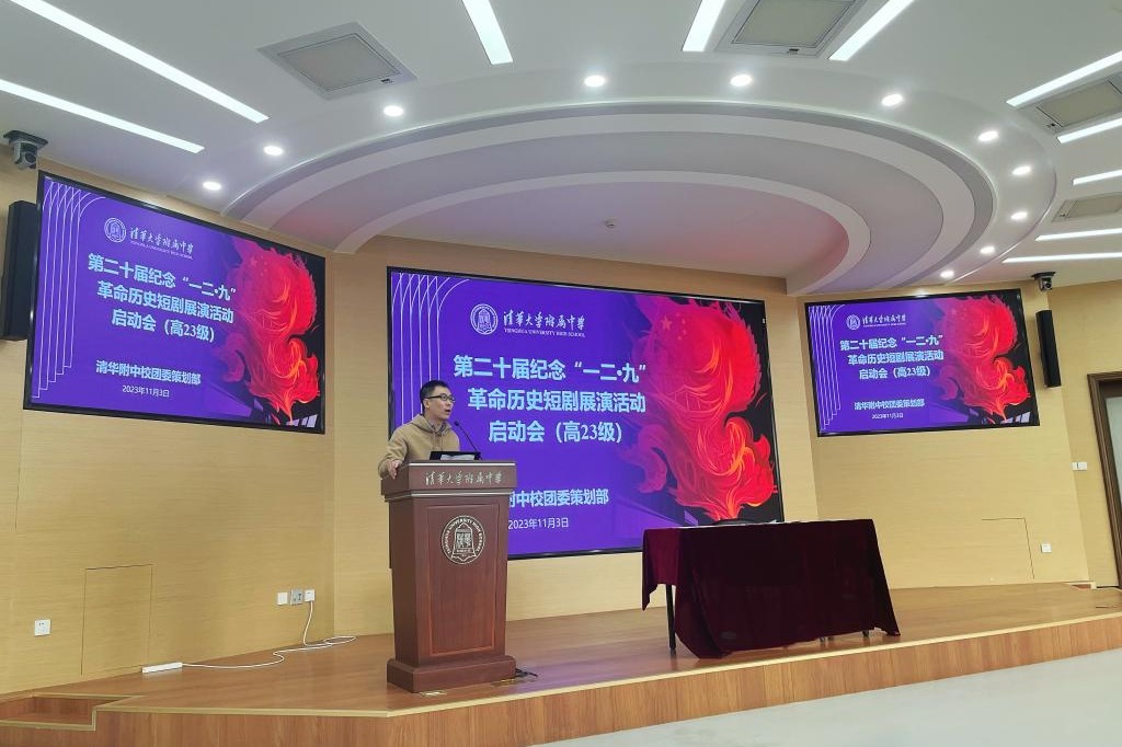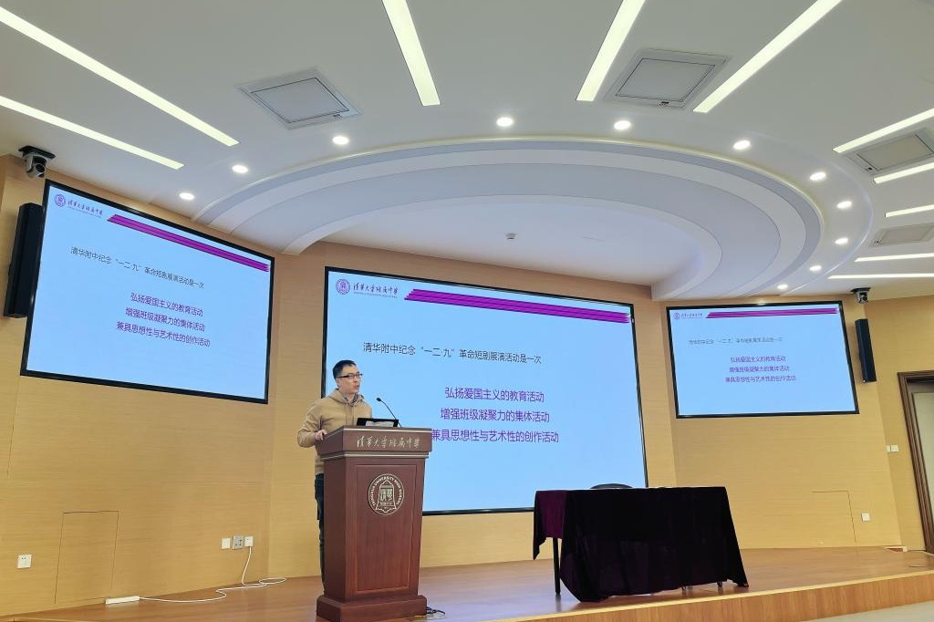 团委书记于洺老师也从自己的亲身经历向同学们介绍了一些注意事项,并强调纪念“一二·九”革命短剧展演活动是一次弘扬爱国主义的教育活动、一次增强班级凝聚力的集体活动、一次兼具思想性与艺术性的创作活动。