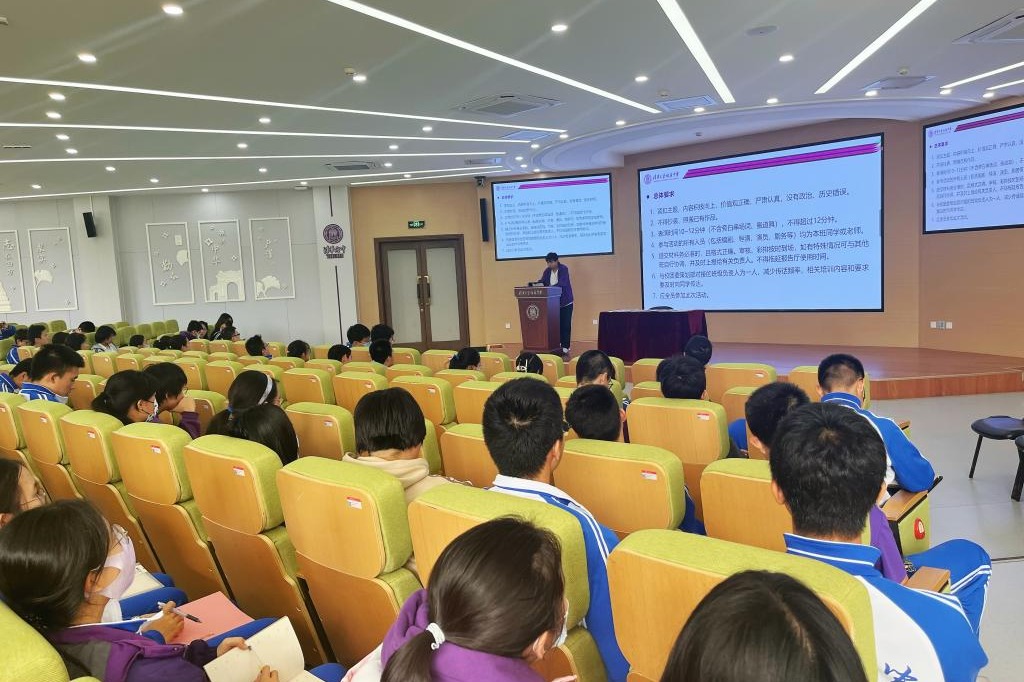 策划部高22级王简文在介绍活动要求和准备工作
