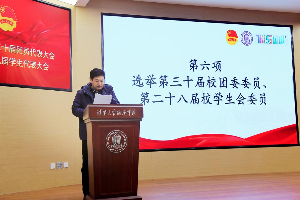 第三十届团委和第二十八届学生会委员候选人分别进行了每人一分半钟的竞选演讲。同学们充分结合了个人的特长和性格特点介绍工作设想,内容详实,体现了为同学们“干好事、干实事”的工作愿景。候选人发言结束后,团员代表秉持着公平、公开、公正的原则,投票选出了新一届团委学生会。白雪峰副校长宣布了选举结果,并对新一届团委学生会委员提出了殷切期望。