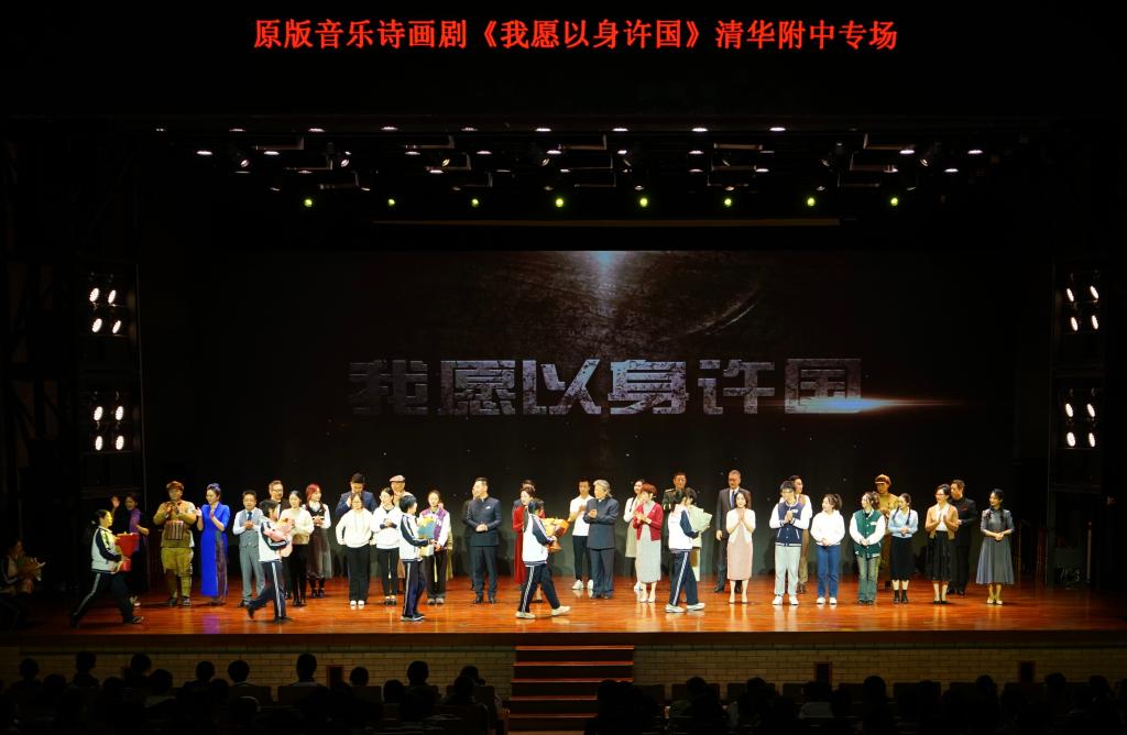 11月17日,为纪念梁启超先生1914年11月5日清华《君子》演讲109周年,bg真人娱乐校长方妍,党委书记曹海翔、副书记张洁,副校长白雪峰、张苏、周建军和高二学部师生一同前往清华大学大礼堂观赏由bg真人娱乐初64级校友、著名词作家克明参与主创的音乐诗画剧《我愿以身许国》。