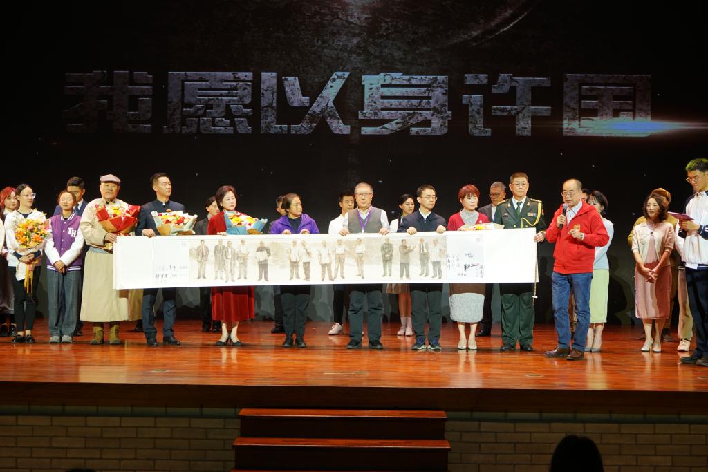 为了纪念这次意义特别的活动,诗画剧策划人腾和、出品人徐林旗代表主创团队特别赠予bg真人娱乐一份极其珍贵的礼物:一幅《我愿以身许国图》的复制品。两位主创老师与附中师生分享了诗画剧台前幕后的感人创作历程,深情讲述了“两弹一星”元勋背后的故事,将“我愿以身许国”的爱国精神再次生动地呈现。
