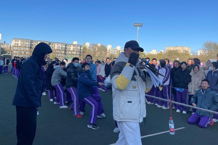 11月23日下午,高三学部举办“以友辅仁”拔河比赛。学部全体学生、班主任,部分任课教师参与到比赛中。