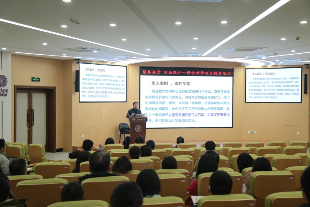 11月24日,bg真人试玩在华茂楼208会议室开展以“聚焦课堂突破跃升”为主题的课堂教学提升培训会。特邀北京教科院课程中心副主任王凯教授进行主讲。bg真人试玩党政领导、全体一线教师近300位参加了本次培训。会议由教学管理与研究中心主任张彪主持。