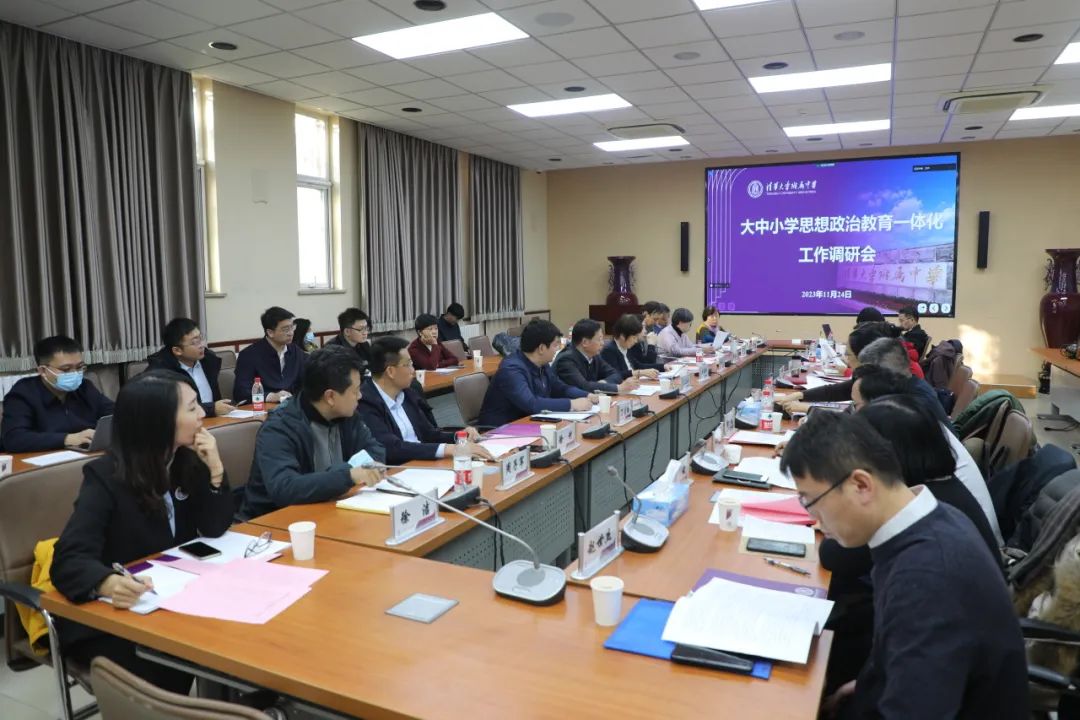 为更好推进大中小学思政一体化建设,11月24日,大中小学思想政治教育一体化工作调研会在bg真人试玩召开。北京市委教工委副书记王达品、宣教处处长于海、副处长丁贞栋,市学校德育研究会会长关国珍、常务副会长尹丽君、副会长谢春风,海淀区委教工委副书记吴谨以及大中小学代表参加会议。会议由关国珍主持。