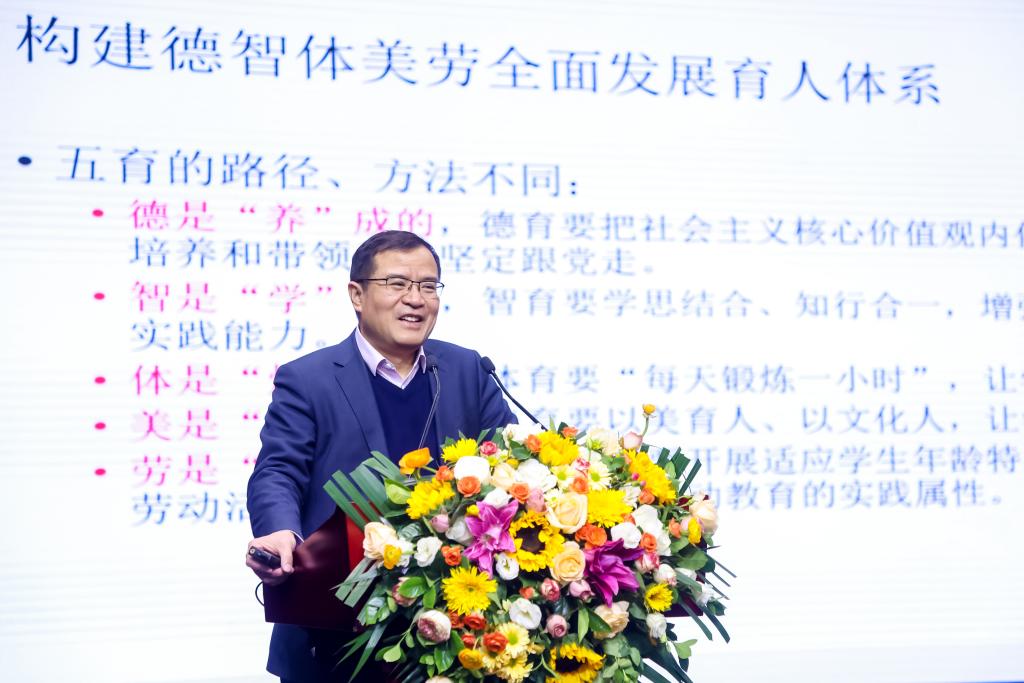 怎样“推进核心素养导向的教育高质量发展”,如何“从五育并举”到“五育融合”……主旨报告环节,北京师范大学教授褚宏启、清华大学教育学院院长石中英先后作主题报告,不仅从教育理论层面抽丝剥茧式地阐明了“核心素养”“五育并举”“五育融合”等核心概念的来源、演变与内涵,并针对中小学教育高质量发展实践层面的现状、趋势与问题,提纲挈领地进行了点拨与指导。
