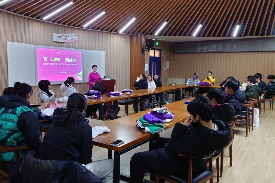 12月3日晚,bg真人娱乐住宿部在华茂楼B201开展《“寓”见收纳,整洁舒适》课程,本次课程是住宿部“寓”见“清”年——成长系列课程之一,马约翰体育特长班的30位学生和六位住宿部老师参加了课程。