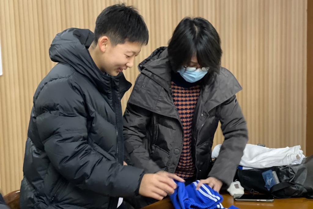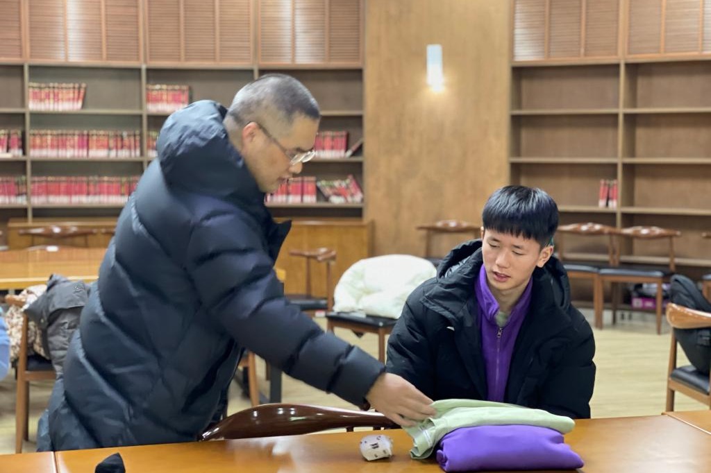 学生宿舍生活管理老师指导学生叠衣服