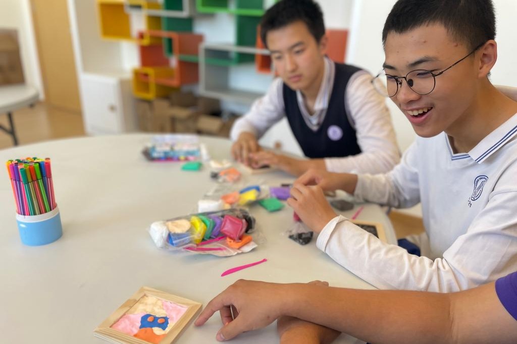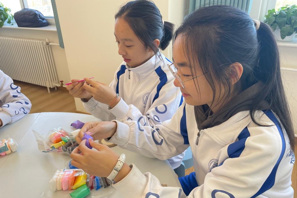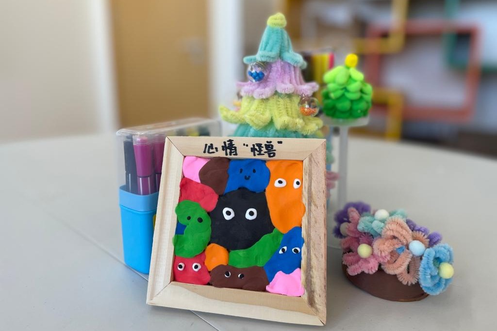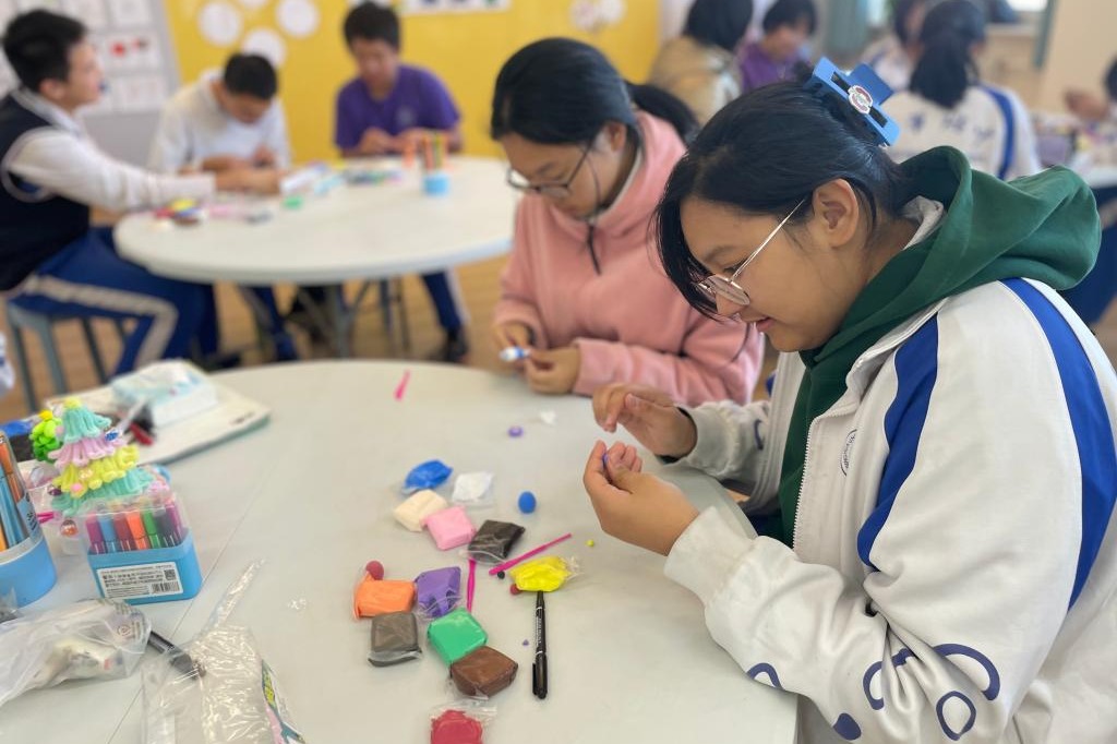 教室里不时回荡着同学们的欢声笑语。大家用不同颜色的黏土表达了自己独特的内心世界,在自由的手工活动中展现了无限创意。