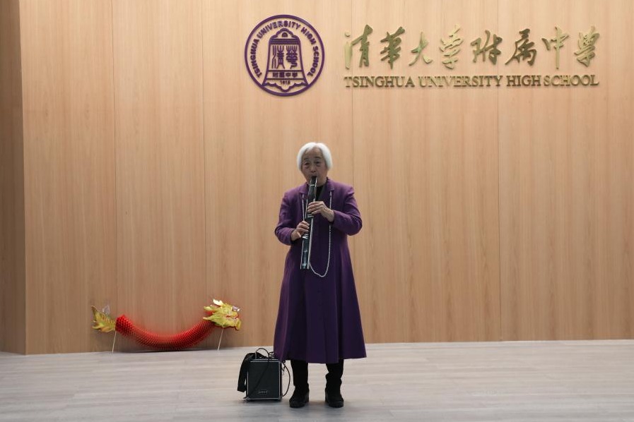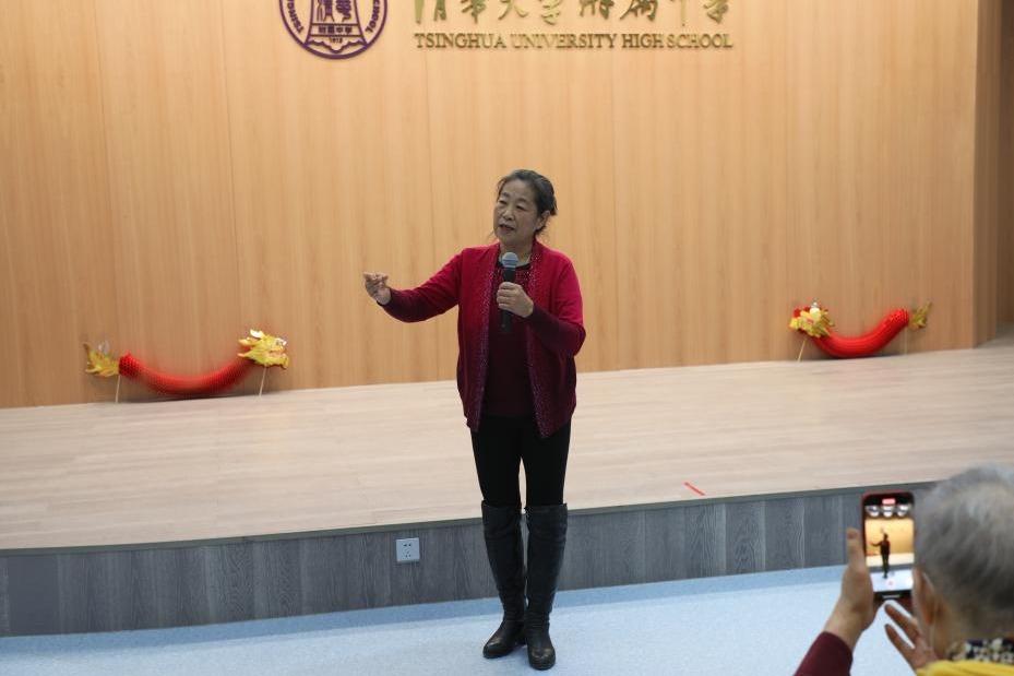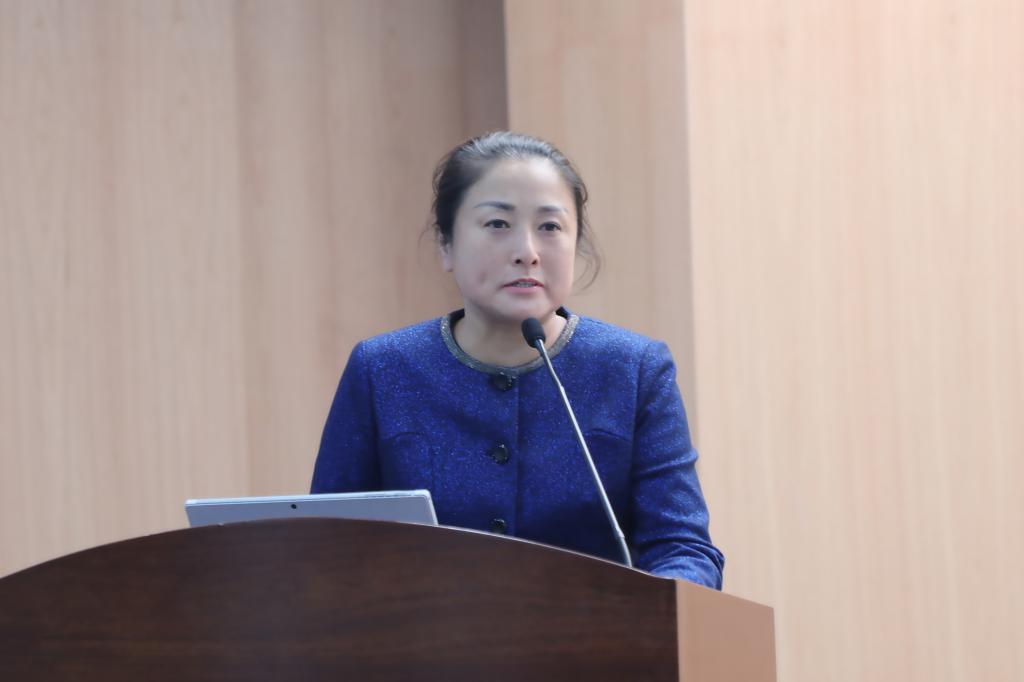 清华大学离退休处副处长袁丽丽老师致辞。她强调了离退休工作的重要意义,并对附中的离退休工作给予肯定。她表示,希望老同志们积极参加大学离退休处及附中组织的各项活动,乐享幸福生活。