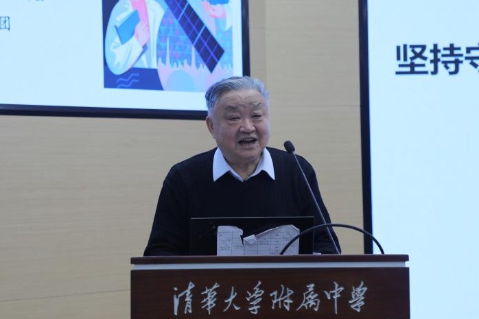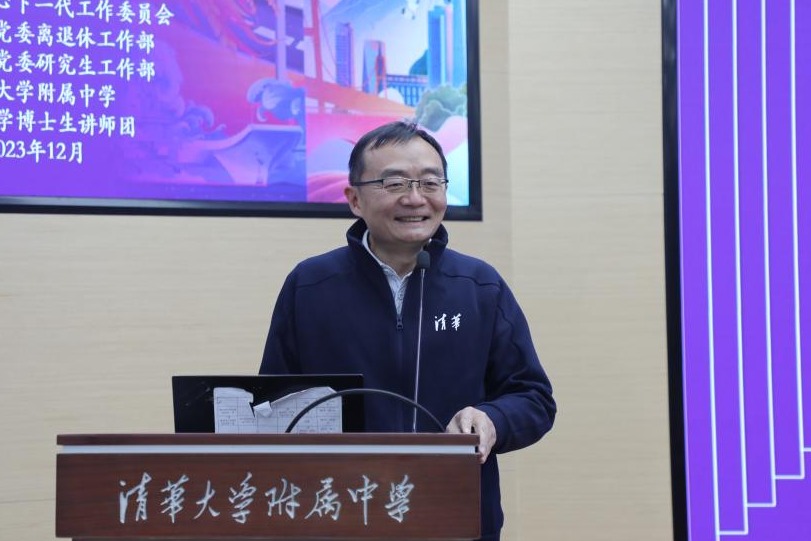 第一位进行宣讲的是清华大学关心下一代工作委员会大学精神文化讲师团的李树勤老师。李老师的宣讲题目是《坚持守正创新,上好大思政课》。77岁的李老师回忆了几十年前曾经参与附中教学改革的经历,表达了他对bg真人试玩的深厚情谊。李老师向同学们介绍了清华大学前校长蒋南翔先生提出的“思想过硬”的三重境界:爱国主义、社会主义、共产主义。李老师强调,思政教育必须要坚持守正创新,我们要对“大思政课”高度重视、认真理解、坚决贯彻:深化马克思主义理论教育,用习近平新时代中国特色社会主义思想武装头脑;以社会为大课堂,注重实践教育,教育青年有大胸怀、大视野、大格局、大担当;要有规模宏大、师德高尚、专尖结合的师资队伍,发挥榜样作用;要有与大课堂适应的大教材,把历史变迁、社会变化、时代变革融入大教材。大思政课教育青年在新形势下筑牢思想政治上的防火墙,心怀国之大者,成为无愧于担当祖国未来重任的新一代。