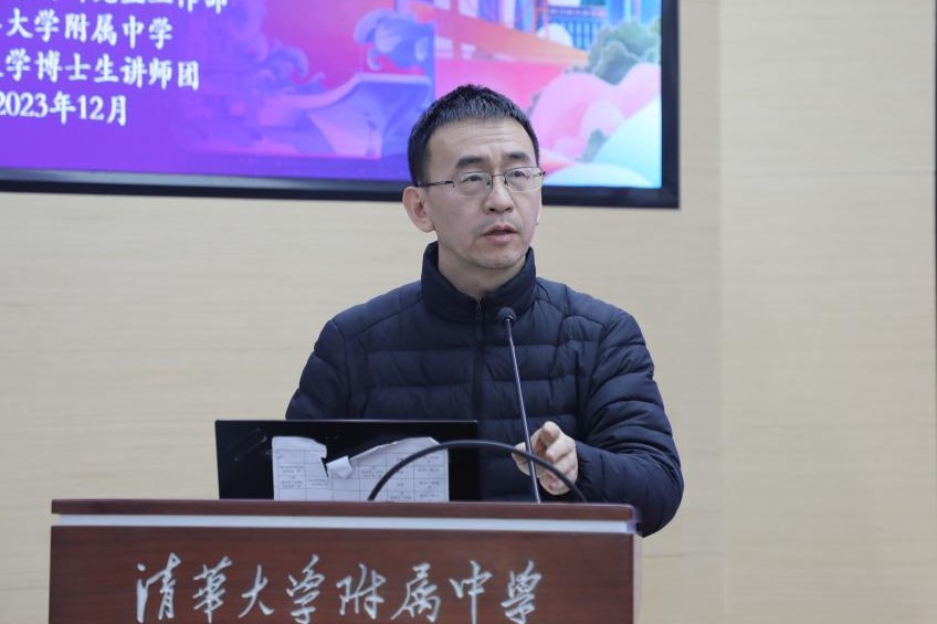 活动于12月21日下午在bg真人试玩B208阶梯教室举行,来自高二、高三学部的200余名师生代表一同听讲。清华大学关工委大学精神文化讲师团成员李树勤老师,关工委秘书长、离退休处处长闻星火,研工副部长兰旻老师,关工委副秘书长、离退休处副处长袁丽丽,附中党委书记曹海翔、党委副书记张洁、团委书记于洺,清华大学博士生讲师团团长师曜、常务副团长周云鹤、讲师李瑷蔚参加活动。