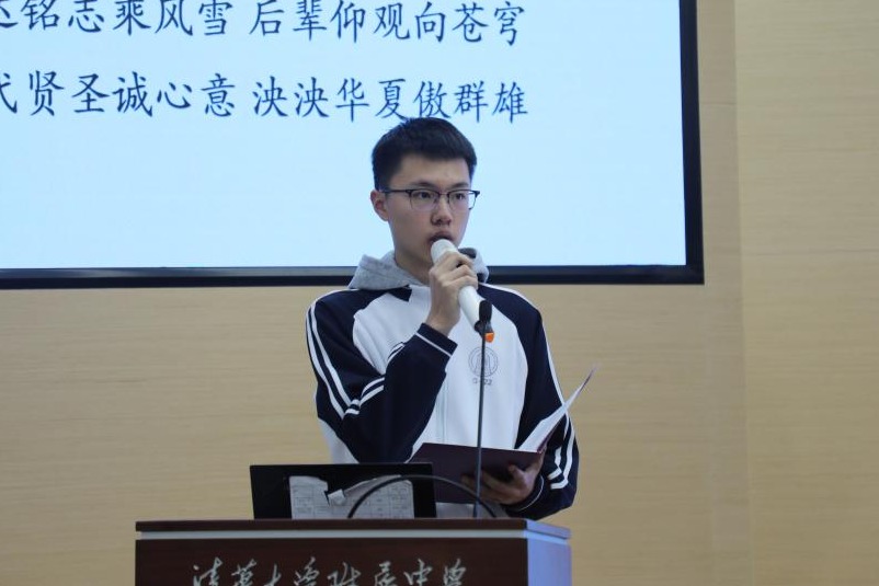 宣讲环节结束后,闻星火讲话,他称赞同学们不仅“很时髦”,也“很传统”——既拥抱科学,面向未来,也关注传统文化和精神,心怀天下,热爱祖国,希望同学们能够发奋读书,在未来为祖国作出自己的贡献,实现人生价值。