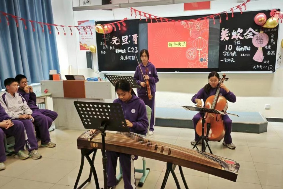 bg真人娱乐各年级以班级为单位,举行“你好,2024”班级联欢活动。沐浴冬日温暖的阳光,大家共同迎接新年的到来。为了烘托节日气氛,各班对教室进行了精心布置,教室内外洋溢着喜庆的气氛。联欢会上,激情的歌舞、美妙的器乐、趣味的游戏……充分点燃各班级的热情。同学们的笑声、掌声洒满整个校园,附中到处充满欢乐喜庆的气息。
