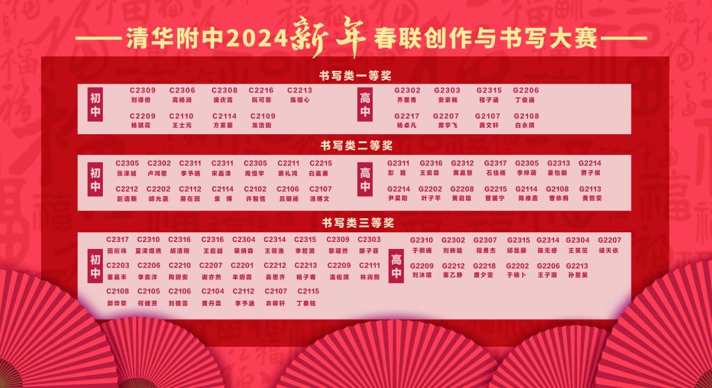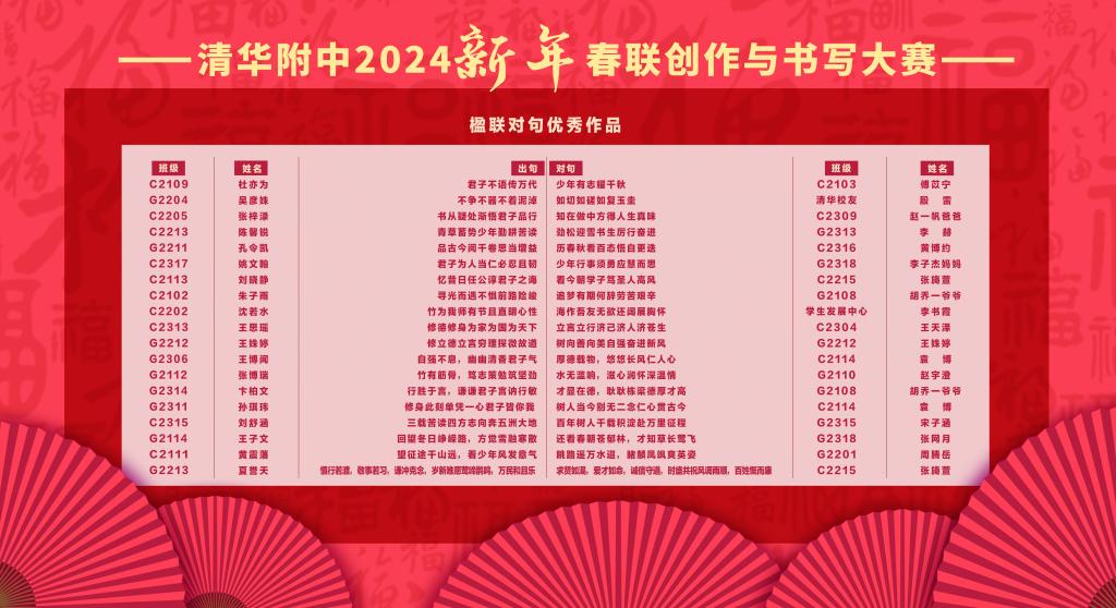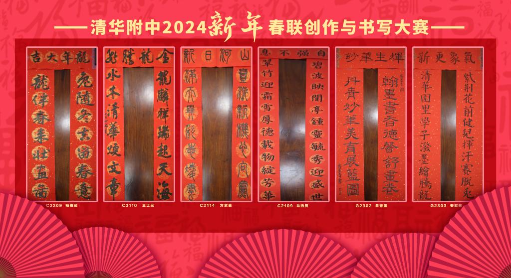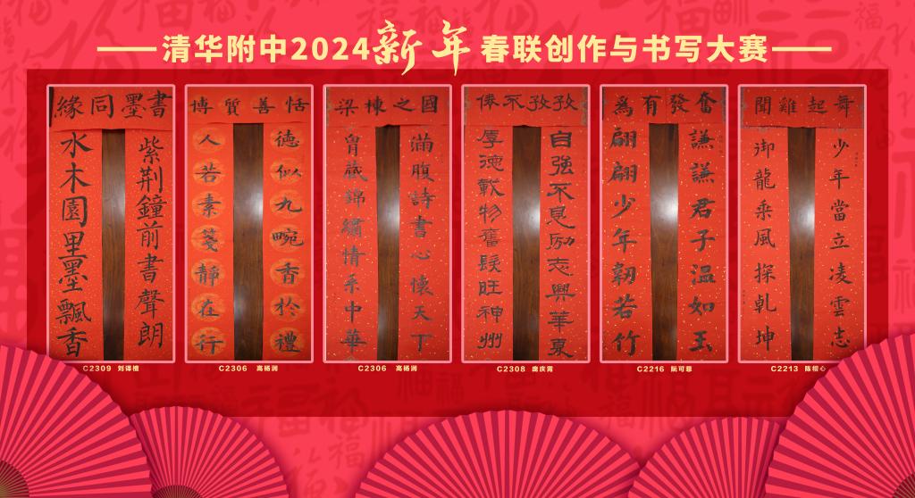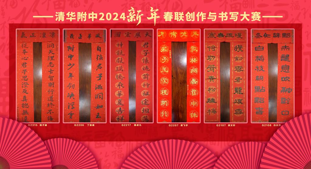 岁末年初,bg真人娱乐举办了“2024年新年春联创作与书写大赛”活动。本次活动以“修君子品格,成自强少年”为主题,是本学期“君子文化主题教育”系列活动之一。附中学子以诗文言志,以笔墨抒情,创作楹联对句作品近600份,春联书写作品近200幅。