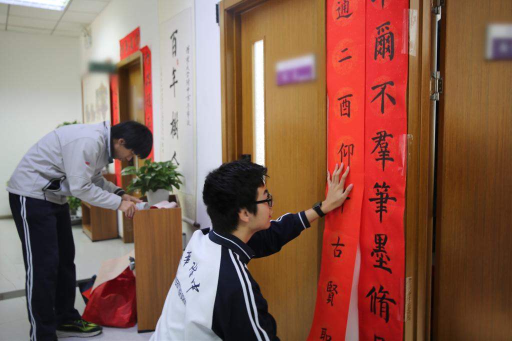 “贴春联、迎新年”是中华民族的传统习俗。在辞旧迎新之际,bg真人娱乐“水木行动”志愿活动的同学们参与张贴春联。他们将饱含附中学子美好祝愿的春联张贴至成志楼、教学楼及班级门前。翰墨飘香的春联,为bg真人娱乐带来了一派喜庆吉祥。