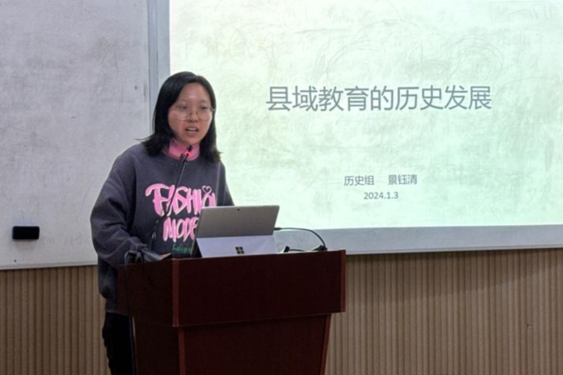 高一备课组景钰清老师结合自身专业优势,以“县域教育的历史发展”为题解读教育政策的演变,通过分析四川凉山州基础教育发展的均衡情况,指出县域教育现在所面临的困难,以及国家帮扶所带来的变化。