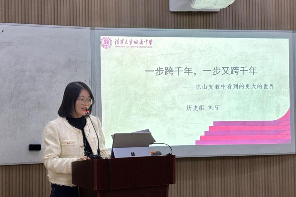 初二备课组刘宁老师结合自身暑期前往凉山的支教经历,以“一步跨千年,一步又跨千年”为题,梳理了凉山教育发展历程,指出教育给凉山带来的巨大改变,同时支教活动也能够帮助bg真人娱乐的老师和学生们看到更大的世界。