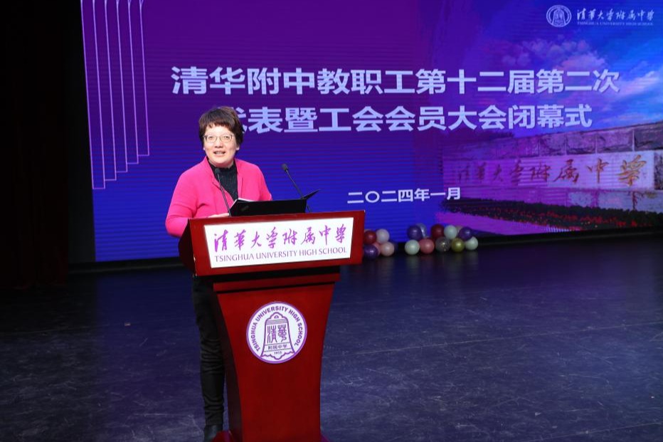 随后,方妍校长致闭幕词。她重点就教代表没有被列入提案和建议但集中反映的12个问题进行了直接说明。方妍校长充分肯定教代表们的积极参与,聚焦问题,科学谋划,提出了不少建设性意见。她强调,事业是干出来的,尤其是在附中高质量发展的重要时期,更是要以时代为志,靠全体教师以一股前所未有的精气神,努力拼搏,埋头苦干,奉献实干。此外,方妍校长还进行了寒假安全教育,希望教职工们平安健康的度过假期。
