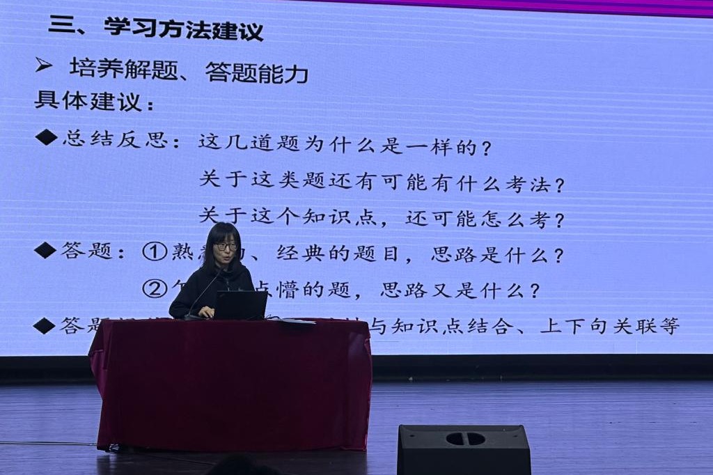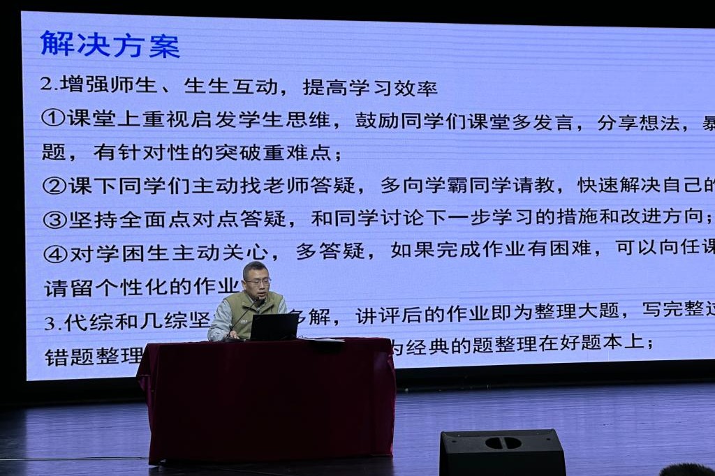 初21学部数学备课组长向永红分析了学生面对数学学科的困难和挑战,对不同层次的学生给出了分层学习建议,从不同方向保证基础、中档、压轴题的得分。