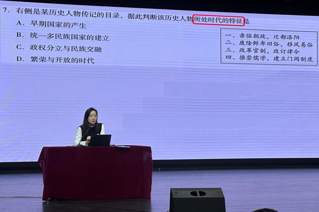 初21学部道德与法治备课组长黎颖从解题、答题的方法入手,分享了学科知识的应用离不开对生活和社会的关注,应当站在出题人角度进行揣摩。
