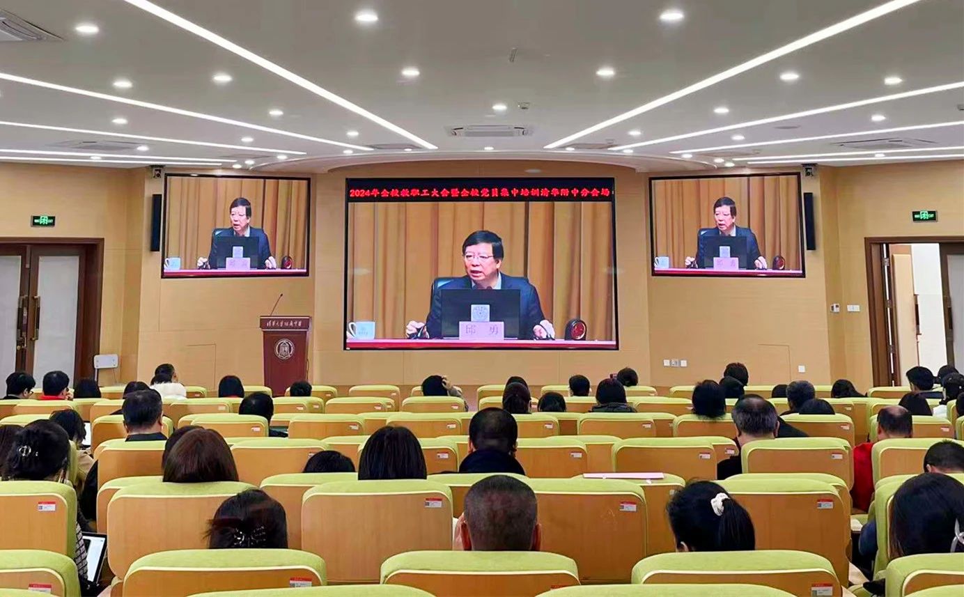 2月29日下午,清华大学举行2024年全校教职工大会暨全校党员集中培训,传达学习习近平总书记近期重要讲话精神和中央重要会议精神,向全校师生员工、全体党员通报学校当前改革发展形势及2024年重点工作,并就推进落实《清华大学全面贯彻落实党的二十大精神行动方案》、以高质量党建引领高质量发展进行工作部署。校党委书记邱勇主持大会并作题为“自信从容 自强创新 以高质量党建引领学校高质量发展”的专题报告,校长李路明以“创新引领谋发展 勇毅前行绘新篇”为题作学校工作报告。校领导班子成员、广大师生员工及2.8万余名党员分别在新清华学堂主会场、近300个分会场及荷塘雨课堂参加会议。
