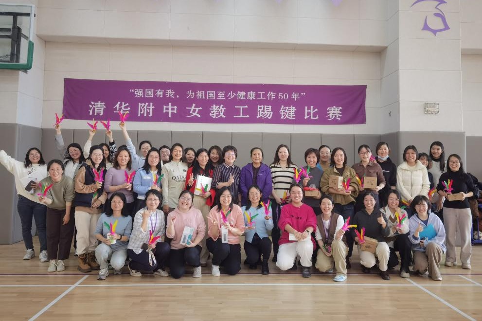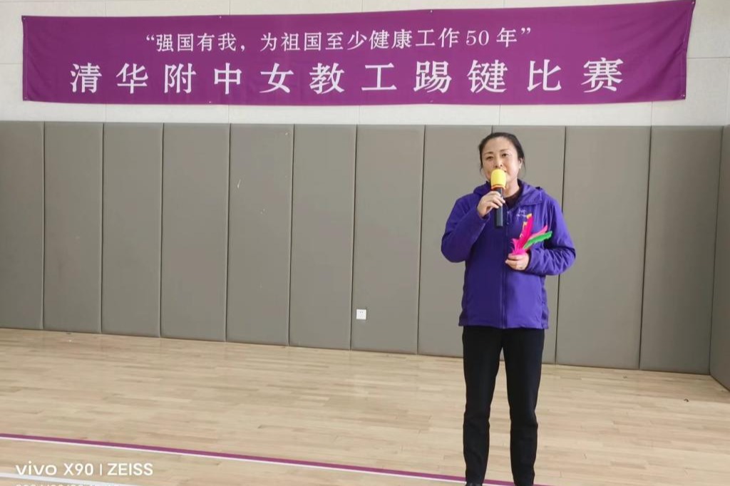 3月8日下午工会在体育馆一层开展了“强国有我,为祖国至少健康工作50年”女教工踢键比赛和健身操锻炼活动。女教师们热情参与。校长方妍、党委副书记兼工会主席张洁参加活动,并为获奖教师个人和获奖团体颁奖。