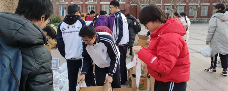 2020年1月4日,bg真人娱乐高19级学生在华辰楼前开展了“微公益,梦起航”——太阳村有机菜花义卖主题公益活动。本次义卖分为前期义卖和后期采摘分发两部分。组织义卖过程中,共有15个班级家委、热心家长组织鼓励各班级同学参与,以邻里亲友间推销和朋友圈宣传等方式进行。后期分发主要由年级组长周建军老师,家长组织者和15个班约500名同学卸车、分发。