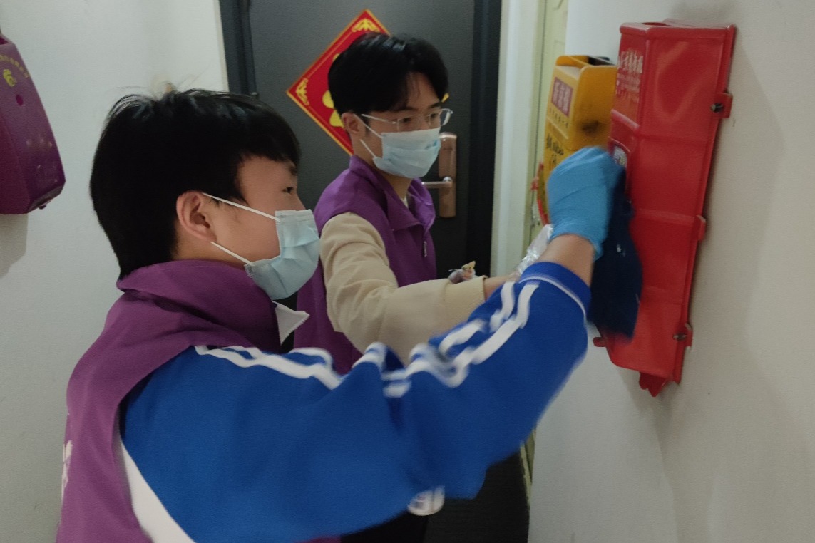附中学生帮助社区清除小广告