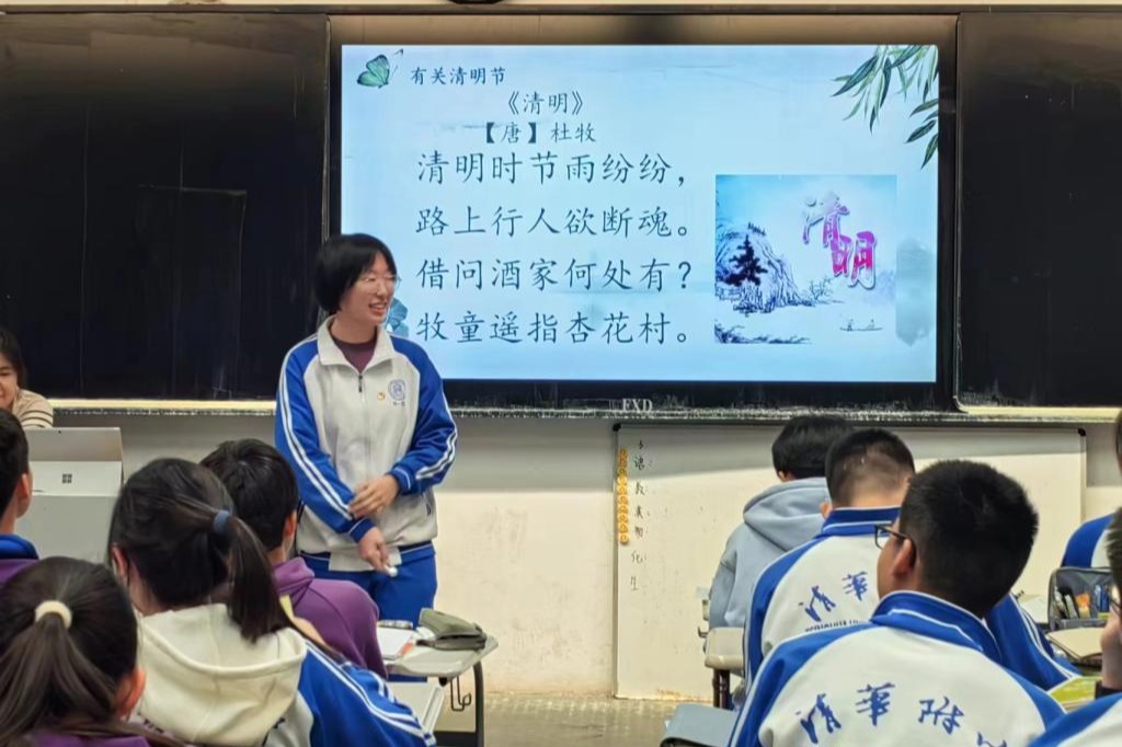 高一4班,高二3班、12班、14班等班级组织同学们查阅与清明节有关的古诗词,通过给古诗配图、配乐、诵读等形式,感悟诗词中蕴含的古代先贤的精神力量。同学们通过集体朗诵《悼杨铨》《清明》《破阵子》等清明节相关诗词,在古韵中体味情感,在抒情里反思、立志,缅怀革命先烈。