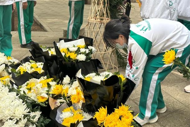 高一11班、15班在清明特色主题班会中组织全体同学一起前往清华大学的英烈纪念碑建筑群进行祭扫。同学们献上鲜花,表达对先烈的敬意。高一5班采用线上学习的活动形式,利用课余时间访问中华烈士网、清华大学红色网站等进行“云祭扫”。同学们通过多种形式,进一步了解学习先烈们的事迹与贡献,增强对历史的了解以及对先烈的敬仰。