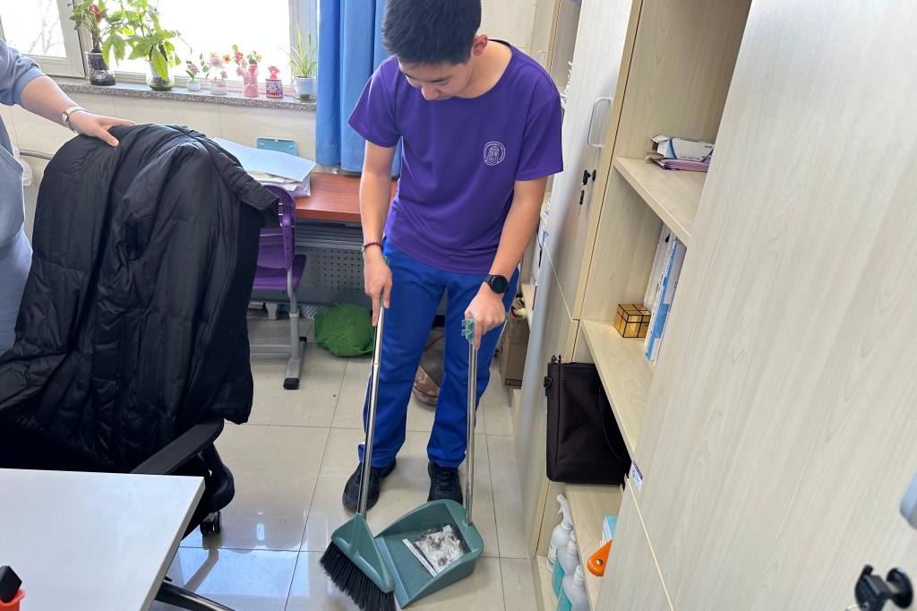 初2107班的同学们开展了“为教师,献爱心”卫生大扫除活动,利用课余时间为老师们打扫办公室。倡导同学们尊重老师,爱护环境。